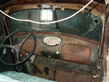 10 May 2014 | The sedan arrives from Missouri. Both cars are sent to a body shop in Lancaster where the major surgery was done. Yeah, I ended up losing some areas of the sedan that had already been worked on, but the trade off is worth it. I also notified the national HET Club of the presence of the Terraplane pickup, and described that the sedan previously recorded was becoming the donor car. (Better a rare pickup than just another sedan). | |||