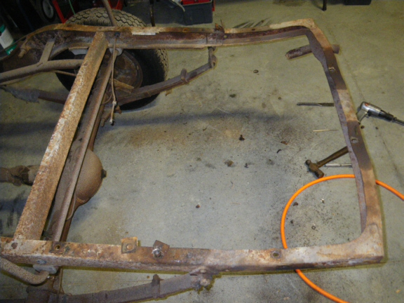 28 Feb 2010 | Tim reports good progress on removal and replacement of rusted out sections of metal. There was a lot to replace, but the gas tank strap attachment points have been restored now. The U channel under the floor connecting to the seat frames had to be replaced, and we found excellent replacements at Mill Supply (rustrepair.com). They were a bit oversize, but still fit just fine. | |||