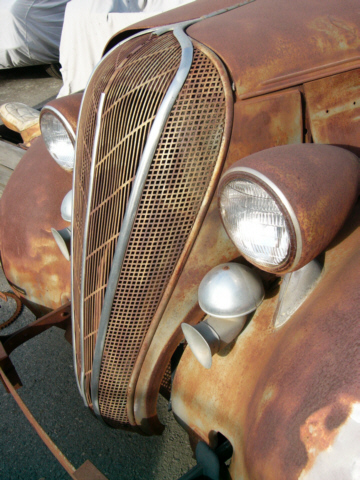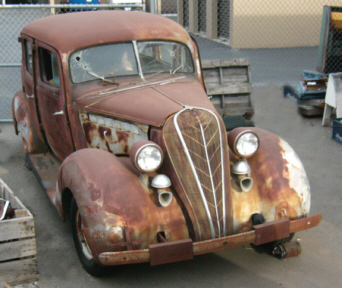 The car was last driven in 1951 in Minnesota and parked where it apparently sat for decades. In early 2007 it was brought to San Diego. I purchased the car in June 2007, and shipped it to Warrensburg, Missouri to get work done. The car was entirely complete, but there was rust in front floorpans, around the trunk floor and the bottom door edges. The hood ornament was missing, and the wheels were not original, but otherwise everything that had been on that car when produced in 1936 was still there.