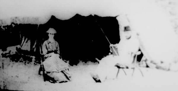 tent. It is hard to see, but his wife Isabel is sitting down next to