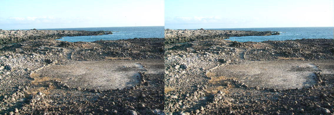 The image above is a stereo pair showing the location of the Gill sleeping tent. The small collection of shells she collected in 1877 are just to the right of center. Yes, they are still there. Cross your eyes until the images merge and you get the 3D effect. You may have to back away from the monitor a bit. |