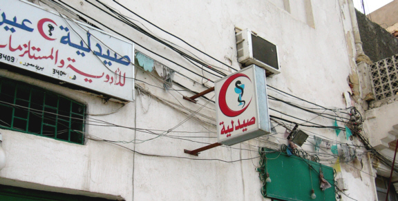 Pharmacy sign in Tripoli souk. Check out all that exterior wiring.