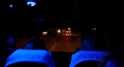 Going into Benghazi, we had police escort, but with bright blue lights on inside our bus, and our large windows, we felt a bit like a Box o' Targets going down the road. |