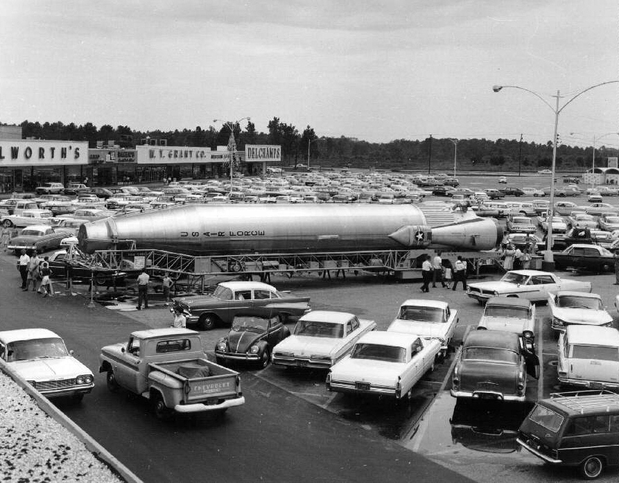 One of the first Atlas missiles to be delivered to the Cape was taken on a public tour along the way.